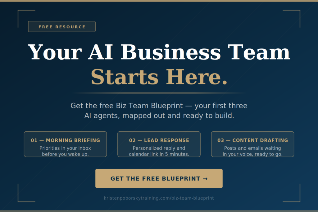 The business owners who are getting the most out of AI aren’t the ones with the most tools. They’re the ones who took the time to build the structure. They identified the work that keeps happening — the tasks they keep putting off because they’re too busy doing the work only they can do — and they built agents to handle it.